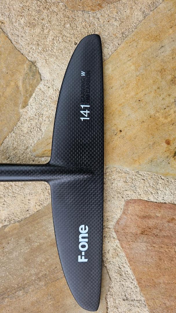 The foil retains most of its glossy finish, reflecting careful use and proper care by the previous owner. Any minor scratches are purely cosmetic and do not impact hydrodynamics or performance. The high-quality resin coating protects the carbon core, and no UV or saltwater damage has been observed.